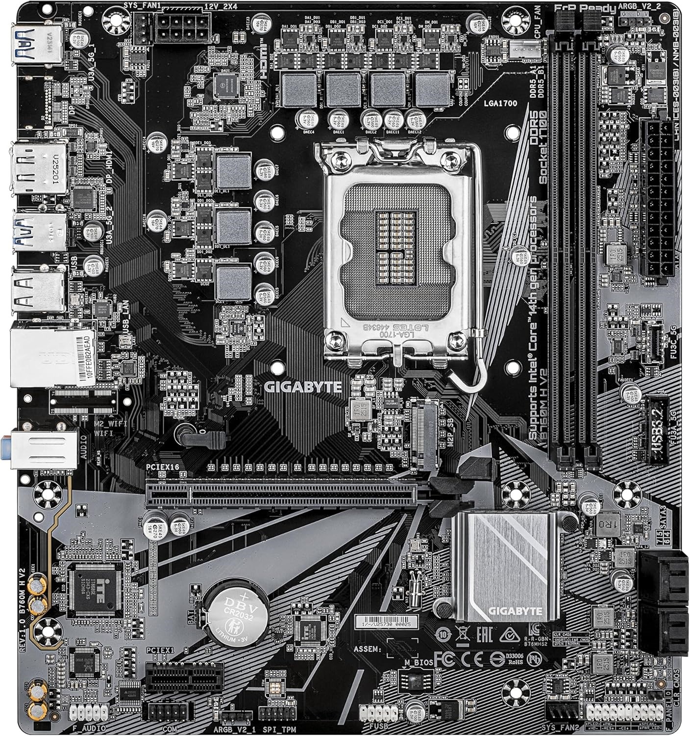 Gigabyte B760M H V2 8000MHz(OC) DDR5 LGA1700 mATX Anakart B760M-H-V2